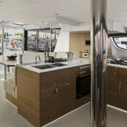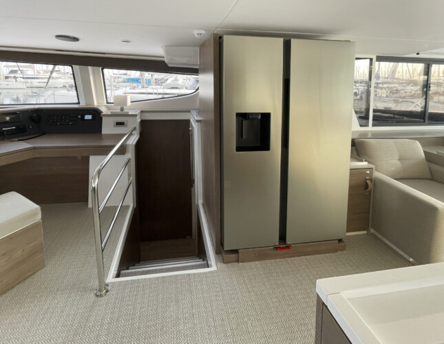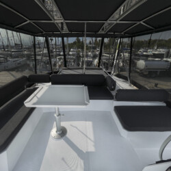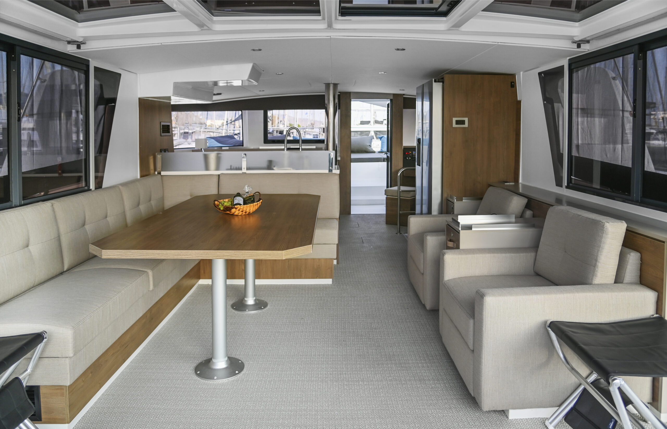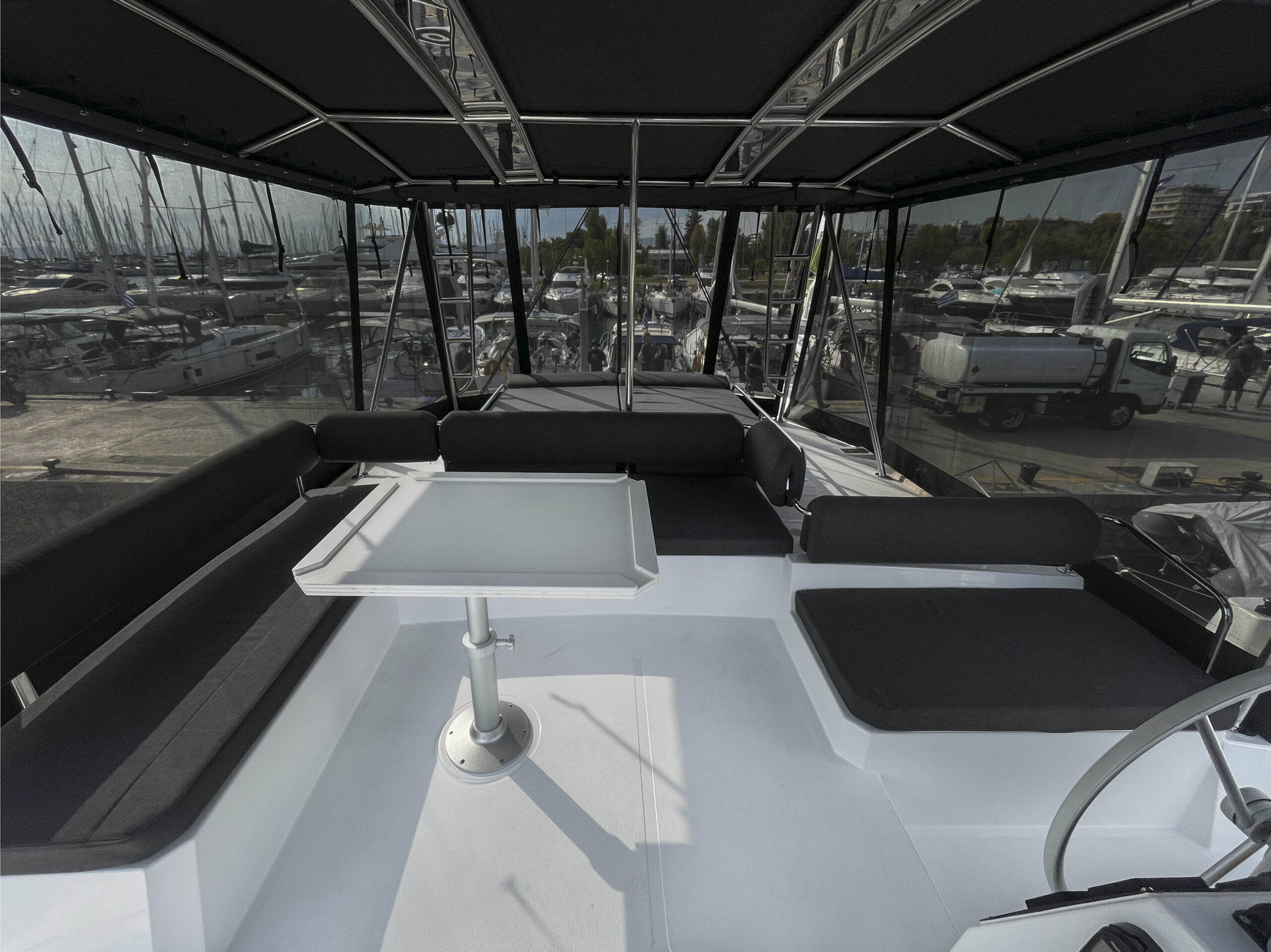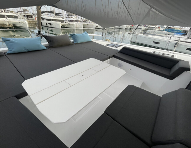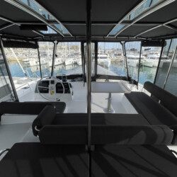Bali 4.6 combines modular front and aft cockpits, a complete cooking area at the back, a practical and safe access to the sea, still giving Nautal Design large volumes in the salon to fully express themselves. With its double access, the Flybridge is dedicated both to maneuvering and relaxing. Helm station offers protection and visibility. With two Yanmar engines of 57 HP with turbo for quick navigation and greater maneuvering in the harbor.