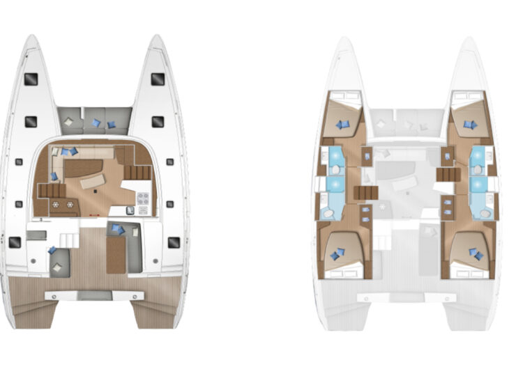 An elegant silhouette, flowing curves, which, by a noticeable acceleration of the lines in the bows and the new coachroof design, emphasise the powerful and dynamic nature of this new model. A VPLP design naturally, a guarantee of performance under sail!